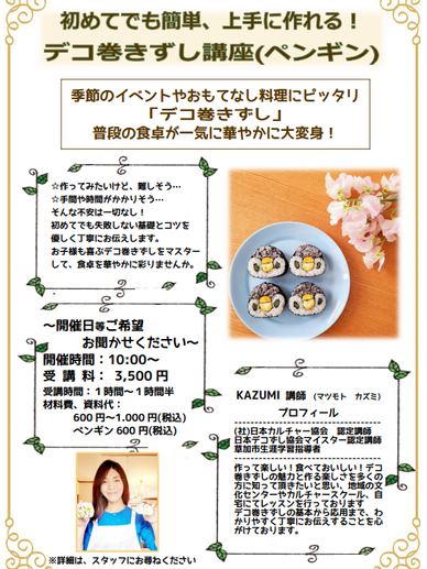 「暮らしの彩り講座 ーMUSUBIー」は新しい趣味に出会え、趣味を通じて交流の輪を広げる新しい講座群です。提供講座は手芸などのモノづくり、茶道・華道などの伝統文化、SNS活用やスマホの撮影講座など多岐に渡り、専門の講師による本格的な講座を身近に手軽にお楽しみ頂けます。新しい趣味の世界や素敵なご友人たちと、お客様を「結ぶ」講座・企画をご提供致します。